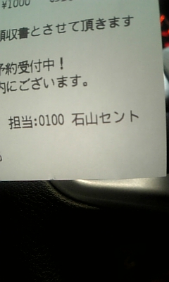 セルフのガソリンスタンドで給油した後、レシートを見ると…『石山セント』えっ!?せんとくん?僕を追い掛けて遷都してきてくれたのかい?笑…という妄想を巡らし写メっ!!ちなみに大津市のユルキャラは…『おおつ光くん』…はあ…センスないぜ笑しゃらくせえっ!!