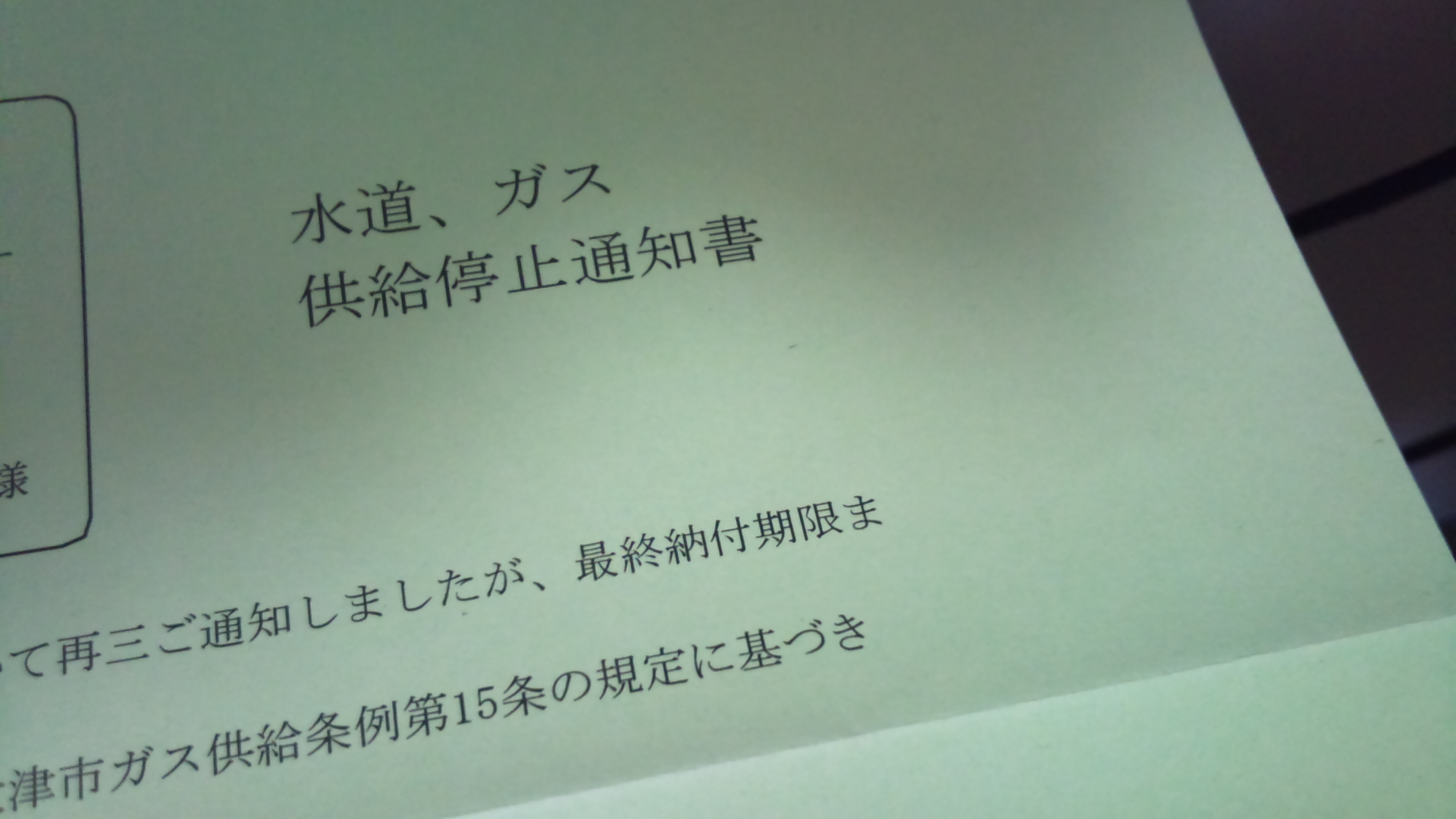 水道、ガス止められた(笑