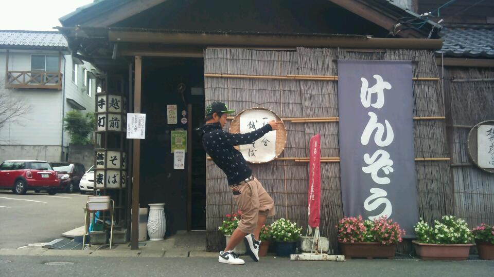 『けんぞう』前にて「やれやれだぜ」辛味だいこんの絞り汁が疲れた体にキクゼッ!!