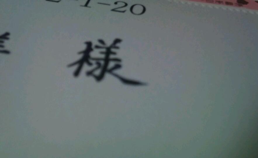 智美ちゃんの結婚式の返信葉書の宛名の後の『智美行』の『行』の部分を改造して、『様』に変えてやったっ!!