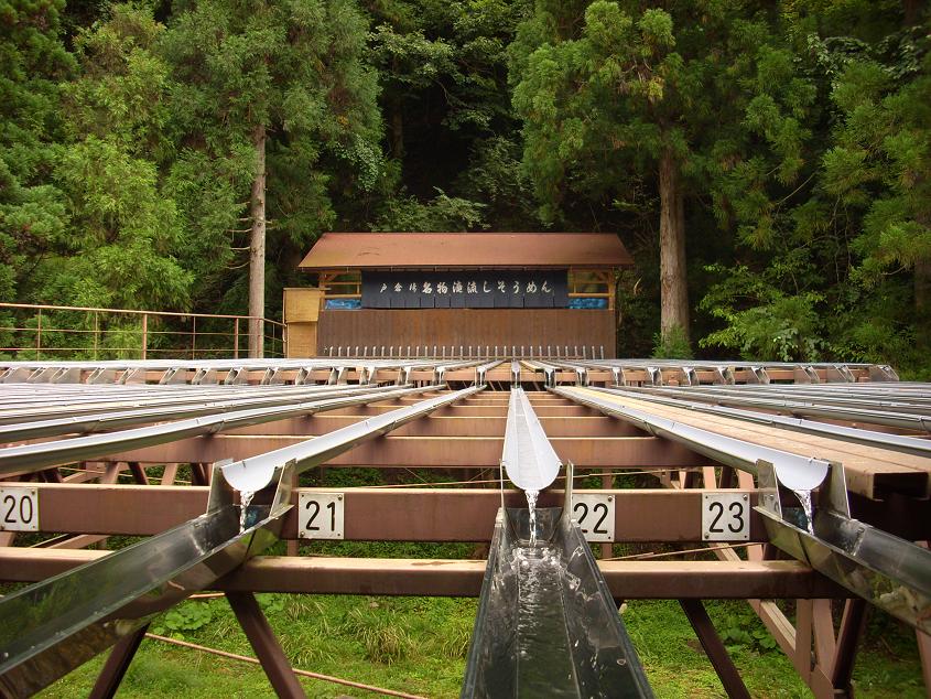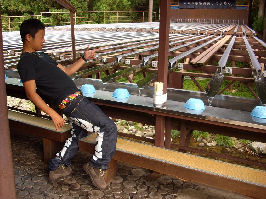 行ってきましたっ!! 『揖保の糸』知ってますよね? そうですっ!! 田中好子さんのCMで有名ですね(;゚Д゚) http://www.ibonoito.or.jp/ その街にあったんですっ!! 川をまたげばそこは鳥取県ってくらいのギリギリの場所っ!! そんな兵庫県宍粟市は戸倉峠の山奥にに突如として現れる 「滝流しそうめん」っ!! 相当期待大っ!! 入ってみると、ズラァァァァァッっとそうめんの管っ(;゚Д゚) 食べる時はこんな感じの風景っ!! 異様(笑) 「あ、そっちからこっちへの”流し”なのね(笑)」 予想外'`,、('∀`) '`,、 あっちからこっちへ、川をまたいでそうめんの束が流れてくるんですっ!! しかも、4束くらい流れて来て終わり(笑) 「え?あれ、何?」 向こうからそうめんの束ではないものがドンブラコドンブラコ(;゚Д゚) 流れついたのがコイツっ!! 可愛いじゃねえかっ!! 思わず・・・ 思わず・・・ レロレロレロレロレロレロレロ by.花京院 ジョジョ好きなら、さくらんぼが出てきた時点でオチがわかったでしょうね(笑) これは名場面というか、名不思議場面でしたね(笑) この『滝流しそうめん』には裏切られすぎて逆にインパクト大(;゚Д゚) 一度行ったら忘れられないっ!! そうめんは伸びまくってましたが、雰囲気が美味しかったですっ(笑) 『滝流しそうめん』 HP:http://www.takinagashi.com/ 住所:兵庫県宍粟市波賀町戸倉峠 電話:0790-73-0009 今日もどこかで「やれやれだぜ」 【ジョジョ立ち ポーズ おすすめ】