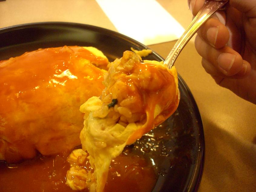 ここも結構な人通りでしたぁっ!! TSMさん、撮影ありがとうございますっ(;゚Д゚) あと、一度目の撮影に不服を申し立ててすいませんでしたっ!!(笑 大丸梅田の地下二階っ!! いわゆる、デパ地下なので、買い物してる主婦ばっかっ!! 上の写真をよく見てみると、紫のコートを来た方が撮影を待ってくれてるのがわかりますねっ!! ご迷惑おかけ致しましたっ(;゚Д゚) コチラ北極星はデパ地下の中にあるので、お店にドアもなく、 買い物客が後ろをドンドン通れる状態っ!! しかもテーブルかカウンターのみっ!! 4人で行きましたが、2人ずつ別れて座ることにっ!! 早速注文したのが、法蓮草&ベーコンオムライスっ!! これぞオムライスって思うくらい、綺麗なオムライスですっ!! 外見からは何が入ってるか全然わかんないですねっ(;゚Д゚) イタダキマースっ!! 中を見てみるとっ!! やっと法蓮草がチラッと出てきましたっ!! トマト嫌いの俺ですが、このトマトベースであろうソースは気に入りましたっ!! 中のライスもバターで炒めているようで、風味もまろやかっ(;゚Д゚) オムライスをわざわざ食べに行くってのが、今回がはじめてなので、 口が完全にオムライスになっていたので、頂いた瞬間幸せに包まれましたっ!! そうそうっ!! オムライスを作っているとこを外から見れるんですよっ!! その動画がコチラっ!! 途中、フライパンをフルフルするだけで卵がライスを包んでいくのがスゲーと思いましたっ!! んで、見て欲しいのが45秒付近っ!! オムライスを容器に移すとき、オムライス、飛びますっ(笑 グオンと飛びます・・・ グオン by.ウィル・アントニオ・ツェペリ これは有名なシーンですねっ(;゚Д゚) 座ったままの状態でジャンプですっ!! いやぁ、美味しかったっ!! なんか、調べると阿倍野にもあるじゃないっ(;゚Д゚) そっちの方が、家から近いしっ(笑 『北極星』 HP:http://www.hokkyokusei.jp/ 住所:大阪市北区梅田3-1-1 電話:06-6344-3999