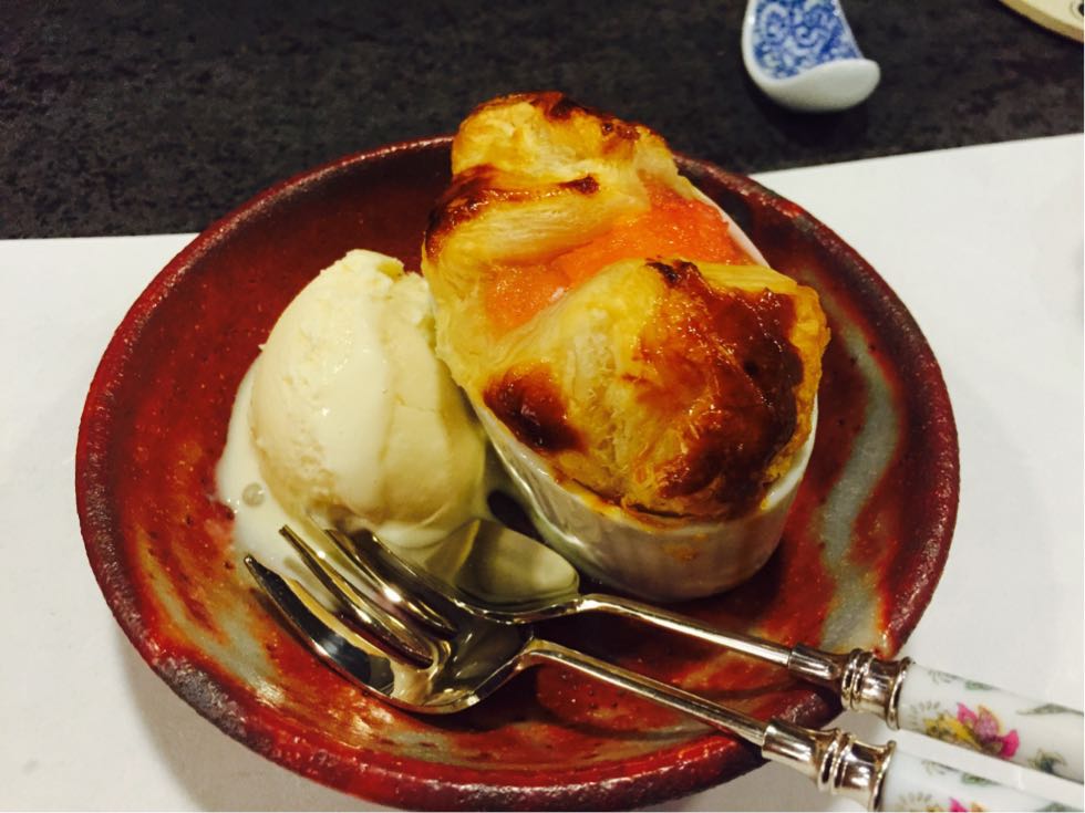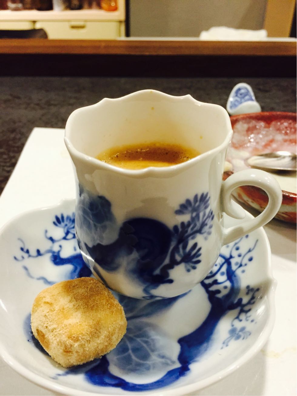 今回は、大将の山崎氏のご招待で伺いましたッ!! 山崎さん、ありがとうございました^^ この立ち方はジョナサンなのか、ジョセフなのかが微妙なんですよね。 ネットでも意見が割れてるみたいだし笑 ・・・ってことで、 今日からこのジョジョ立ちを「ジョナサン立ち」としますッ!! あ、結構どっちでも良い?笑 『割烹 山さき』前にて「ジョナサン立ち」ッ!! 何回来ても毎回美味いッ!! 本日頂いたコースを順に上げてきます^^ まずは、汲み上げ湯葉としいたけ。 食べた瞬間しいたけの香りが広がり、とても食欲をそそる一品でしたッ!! 残った醤油だしで蕎麦をすすりたくなりほど、良い出汁出てましたッ!! 続いて、じゃがいも饅頭。 中は鶏のミンチで、外側のアーモンドが香ばしくて良いッ!! 残った出汁でウドンいけそうでした(笑 ムール貝の酒蒸しと菜の花。 ムール貝って塩分濃度の濃い貝だって初めて知りました^^ 塩見を葉の花で整えるなんて、なんかお洒落(笑 スペアリブの西京漬、 万願寺とうがらしと鶏つくね、 ホルモンのリンゴとたまねぎソース。 和食って基本ホルモンでないんですが、こちらがホルモン好きなの以前に言うたんかな? わざわざ焼いてくれました^^ ソースもリンゴの甘さをたまねぎが引き締めて美味しいッ!! これは焼肉屋でも即完売ですよ、まじ(笑 次は、出汁巻き。 何度もこちらに来ていて、今まで出汁巻きを頂いていないという驚愕の事実ッ!! 見た目以上にフワッとしていたのは、やまいもを混ぜているんだとか。 フワッとまろかやで美味しい出汁巻きでした。 コチのからあげを水菜出汁で。 コチも旨いが、一緒に頂く出汁が旨いッ!! 思い出しただけでヨダレずびっ!です。 そう、これね(笑 続いてはこちらッ!! このへんから本格的に酔っ払い始めたので、 何牛のステーキのクリームサワー添えか記録してませんでした^^; 一瞬で食べ終えたはずです笑 よく覚えているのは、このバルサミコ酢ッ!! もう見た目で旨そうなのがわかったので、少し味見させて頂きました^^ こんなにも葡萄のフルーティさが口に広がるバルサミコ酢は初めて出会いましたッ!! こでだけで酒飲める感じでしたが、やはり肉に一番合いますねッ!! 調べると『レッジョエミリア産バルサミコ カプリッチョ ディ ヴァレリア (ドーディ) 』っていうバルサミコ酢みたいですッ!! かなり高い笑 次は、グラタン的なやつ。 これは僕はあまり好きじゃなかった^^; ・・・って大将にも伝えました(笑 もうちょっとハッキリした味にして欲しかったです。 次はねぎま鍋。 僕、ぶりしゃぶも美味しさがわからないんですよね。 鍋にしたら魚臭さが倍増じゃないですか? これもちょっと好きじゃないです^^; ただ、その出汁のおじやは旨すぎたッ!! これを食べすぎて消化不良起こしたんじゃないかな、たぶん(笑 良い出汁が出て、大満足ですッ!! デザートは干し柿とバターのミルフィーユと小豆。 レーズンバターの柿バージョンです^^ ほのかな甘さが美味しかったですッ!! デザート第2弾、限りなく出てくる笑 食べ過ぎました^^ 最後は安心できる一杯で締めましたッ!! 和三本のクッキーがビターなコーヒーに合いましたッ!! 本当にこの店に出会えて良かったと思いますッ^^ 何度も伺ってますが、レパートリーの多さに驚きますッ!! 是非一度お願いして、ジョジョ飯を作って頂きたいもんですッ!! 特にイタリアンなんか作ってくれたら、もうトニオって呼ぶしかないよね笑 今回も美味しく頂きましたッ!! 皆さんにも是非行って頂きたいッ!! 必ず納得して頂けます^^ 納得・・・ 「納得」は全てに優先するぜッ!! by.ジャイロ・ツェペリ あー美味かったッ!! 新年会コース(5,000円コース)は3月いっぱいまでなんで、 お誘いあわせの上、どうぞ足を運んでみてはいかがでしょう^^ 【割烹 山さき】 HP:食べログ 住所:滋賀県大津市鳥居川町3-18 電話:077-572-6561