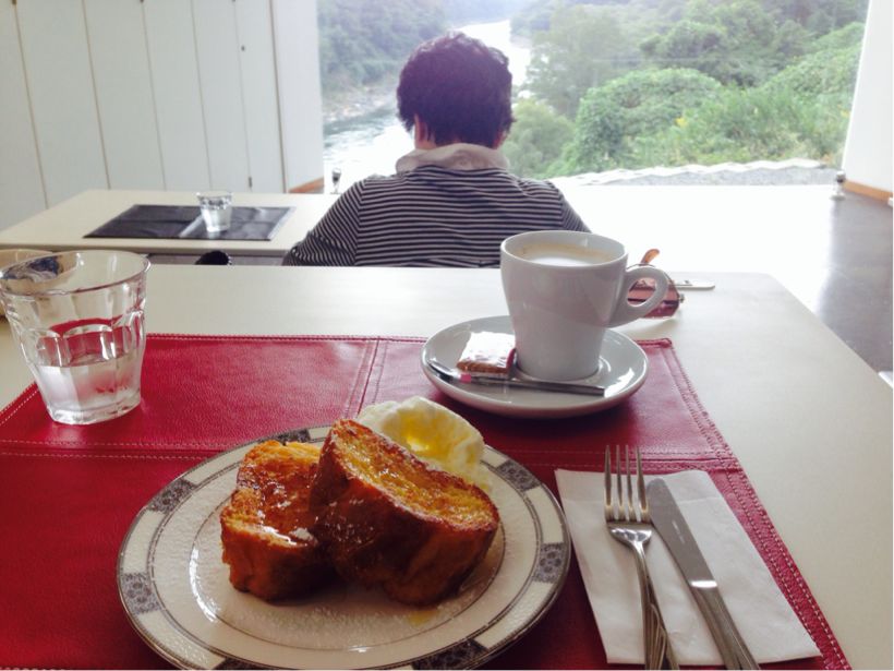 やれやれだぜ・・・ こんなとこに、こんな良いとこがあるなんて^^ ここは立木音楽堂カフェッ!! 外観は無機質な感じで、何屋さんかはわかりにくいですねッ!! お店の中に入ると、この絶景ッ!! 瀬田川を臨む素晴らしい景色ッ!! テーブルにつくとこんな感じ^^ 一瞬で和みました。 ランチの時間は終了していましたが、 ガトーショコラかフレンチトーストなら出来るってことだったので、 フレンチトーストをオーダーしましたッ!! なんと美味そうな^^ はちみつ多めでッ!! カフェオレと美味しく頂きましたッ!! 素敵な空間と美味しいスイーツ^^ これはファンになってしまいましたッ!! とりあえず毎週行くことにしました(笑 ここのママと地元が一緒っていう縁もありましたんでッ! 引かれ合った気がしましたね^^ 引かれ合った・・・ ひかれ・・・ スタンド使いにひかれ合う! by.間田敏和 ま、スタンド使いじゃないから、関係ないけどね(笑 まじで毎週行こう。 ここは癒される。 【立木音楽堂カフェ】 H P:http://music.geocities.jp/tachikiongakudo/cafe.html 住所:〒520-0868 滋賀県大津市石山外畑町110-2 電話:077-546-4000