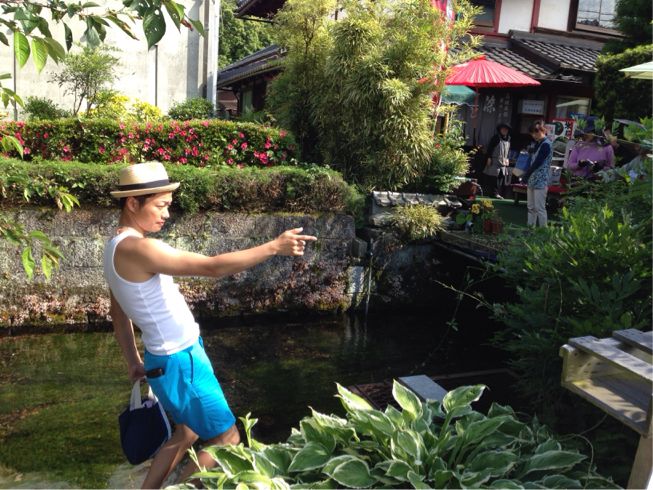 地蔵川沿いの久保田呉服店前にて「やれやれだぜ」ッ!!