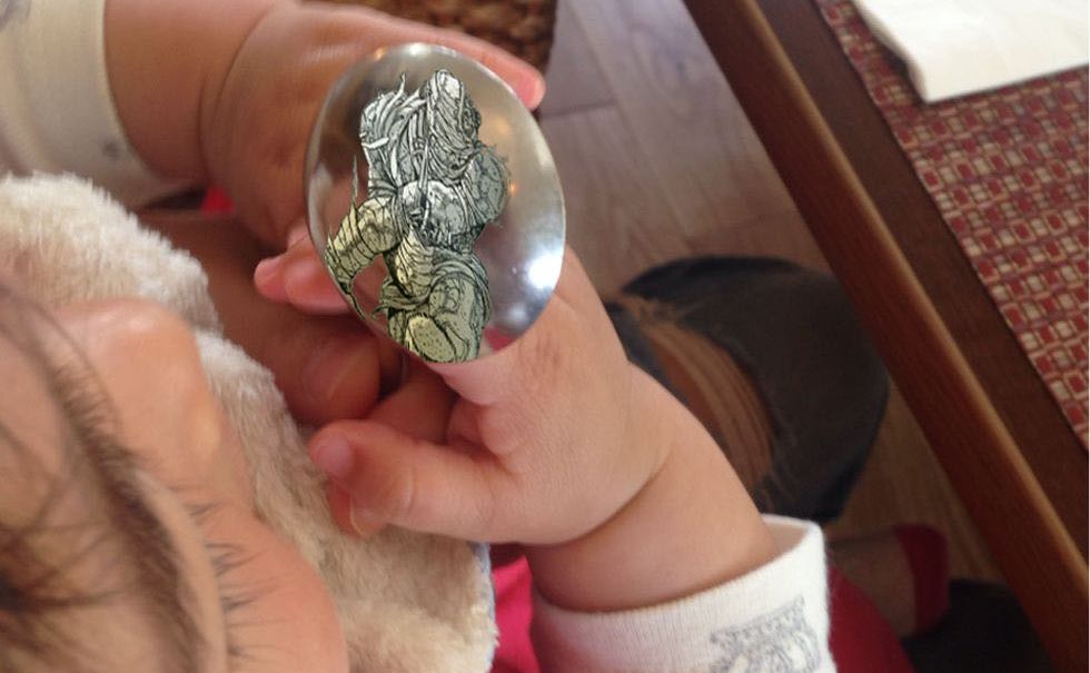 スプーンに承太朗が写ってたのが笑えたので撮っときました(笑