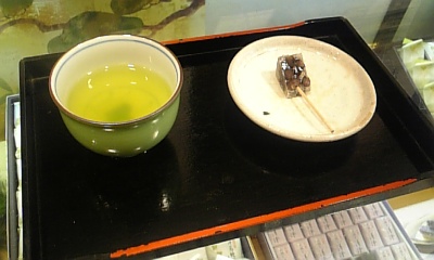お年賀選びの最中に振る舞われたお菓子とお茶。
