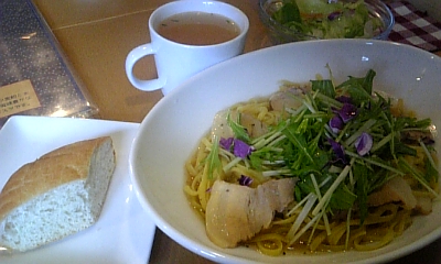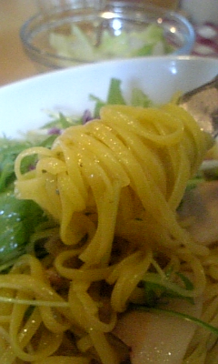 堺筋線長堀橋からスグっ!! 長堀で昼飯を食べようということになり、急遽選んだこのお店っ!! 前々から気になってたんすよねえっ(;゚Д゚) 店の中はこんな雰囲気っ!! カウンター7席とテーブル15席ほどのお店っ!! パスタ店ぽくない、ラーメン屋さんのようなたたずまいっ(;゚Д゚) 入りやすいっちゃ、入りやすいですっ!! 女性一人でもサラッと寄れる感じですかねっ!! パスタは自家製の生パスタを使用しているようでっ!! 何かこだわりを感じますねっ!! 今回注文したランチは、 豚の角煮の和風なんとか(850円)っ!! 次回行ったときにちゃんと調べてきます(´Д`)ハァ… パスタがきし麺のようい平たいっ!! 『見て下さい、この薄さっ!!』(ジャパネット風) オリーブオイルと和風ダシがのハーモニーっ(;゚Д゚) 味噌汁があっても、合うかもしれませんねっ(アワネーヨ 食感としては、モチモチがすごいっ!! モチモチしつつ、しつこくない食感が良かったですっ!! さすが、風味豊かなデュラム粉を使用してるだけありますねっ!! 個人的にはもう少し堅めの方が好きでしたっ!! 今までに食べたことのないタイプのパスタでしたっ(;゚Д゚) どんどん食べたくなりますねっ!! もっと食いたく・・・ うわああああ by.虹村億泰 やはり、パスタと言えばこのシーンですなっ!! こんな感じで、モグモグ頂きましたっ!! 次回は夜に参りたいと思いますっ!! 『パスタ本舗』 HP:ナシ 住所:大阪市中央区島之内1-18-3 三栄ビル1階 電話:06-6281-8770