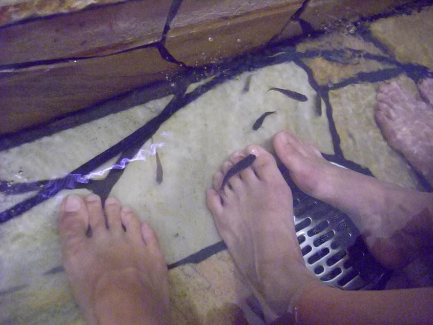 雄琴っていっても、アッチ系じゃないよ?(笑) 多くの人に見守られながらっ!! 京滋最大級の露天風呂っ!! 関西最大級の高温サウナっ!! そんな謳い文句から興味津々っ(;゚Д゚) 入るとスグに目に入るのがドクターフィッシュっ!! 超興味津々っ!! テレビでしか見たことない彼らを生で見れるなんてっ!!(笑) 【ドクターフィッシュ】 ドクターフィッシュは、学名「ガラ・ルファ」というコイ科の淡水魚で、人の古くなった皮膚(角質)を吸い取るようについばむ習性を持っています。また、ついばむ際の小刻みな刺激によって皮膚代謝を促進させる効果が期待できると言われています。 トルコやドイツではアトピー性皮膚炎や乾癬、ニキビなどの皮膚疾患の治療に用いられており、ドイツではドクターフィッシュによる治療が保険適用の医療行為としてカリキュラムに導入されています。このことから現地では通称ドクターフィッシュ(魚のお医者さん)と呼ばれるようになりました。 もっと詳しくはコチラ(http://www.dr-fish.jp/about/index.html)からどうぞっ!! ご対面っ!! 横の人、魚、集まりすぎっ!!(笑) 相当汚いのか、もしくはオイシイのか(笑) いやぁ、初体験させてもらいましたっ!! ピリピリする感じで興奮しましたっ(;゚Д゚) 露天風呂はこんな感じっ!! 琵琶湖が一望できる露天風呂っ!! 手前のん何かわかります? 畳でっせ、畳っ!! 夏は蚊ぁやら、蜂やらが多いみたいですが、 丁度涼しくなった良い季節に来たもんですっ!! ここで20分ほどゴロゴロしときましたっ!! 他にも、つぼ湯があったりっ!! 寝ころび湯があったりっ!! ここでも20分くらいゴロゴロしときましたっ!! 空気も良いし、景色も良いし、設備も充実っ!! いやぁ、たまりませんなぁっ(;゚Д゚) そうそうっ!! 設備と言えば、湯上りで利用できるこんなコーナーっ!! 漫画コーナー(;゚Д゚) ソファーで漫画読みながら、くつろぎながらするわけですなっ!! やはり探してしまいましたっ!! そう、これっ!! 『ジョジョの奇妙な冒険』っ!! 見ての通り(ジョジョラーしか分かんないと思いますが)、 第6部までコンプリートしておりましたっ(;゚Д゚) 最高ですっ!! こんなところにも、浸透しておりますなっ!! いやぁ、楽しかったっ!! ドクターフィッシュにも色々お世話になりましたっ!! ドクターフィッシュも良かったですが、 スカイフィッシュ(ロッズ)もお目にかかりたいもんですなっ!! 見えるぞ・・・ by.空条徐倫 スカイフィッシュ(ロッズ)に関しては、 コチラ(http://www.geocities.co.jp/Technopolis/9567/049.html)をご覧下さい(笑) UMA好きとかそんなんちゃいまっせっ(;゚Д゚) いやぁ、かなりの力技を出してしまいましたね(笑) どういう場面にしようか、迷った挙句のロッズでした(笑) あなたなら、どの場面にしますか?(つд⊂)エーン 『スパリゾート雄琴 あがりゃんせ』 HP:http://www.agaryanse.co.jp/ 場所:滋賀県大津市苗鹿(のうか)3-9-5 電話:077-577-3715