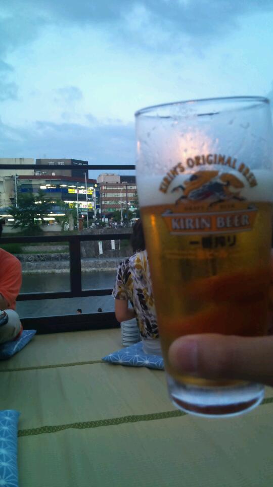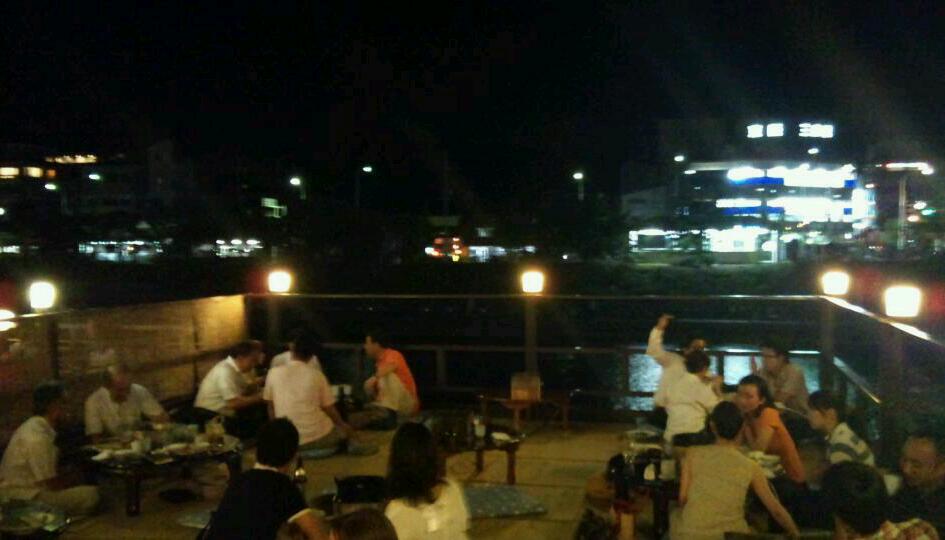 祝っ!!初川床っ!! いやぁ、行ってきました、鴨川の川床っ(;゚Д゚) 昼は蒸し暑かったのに、夜は意外と風が爽やかっ!! 良い日に巡りあたったっ!! とりあえずビールで乾杯っ♫ 眺めも良いっ(;゚Д゚) ここ『こま井亭』では、コースによって数種の肉料理が出てきますっ!! 今回はすき焼きっ!! いやぁ、肉見ただけで、ヨダレずびっ!!(by.虹村億泰) 割下ではなく、ザラメから作ってくれますっ!! なんと、風流な(笑 肉投入っ!! これが本格的な食べ方なんですねっ!! 知らないけど(ボソ 野菜やら豆腐やらコンニャクを入れっ!! もう我慢できないっ(;゚Д゚) 「限界」だッ!(by.吉良吉影) すき焼きの香りがまた食欲を誘いますっ(;゚Д゚) うう・・・ 我慢の甲斐がありましたよ。 うまいっ!! もうこっから止まりませんでしたっ!! ビールも進むっ(;゚Д゚) いつの間にか、周りはこんなに暗くっ!! この時点で、完全に酔っ払いですたっ(;゚Д゚) 景色も料理も両方とも満足しましたっ!! 両方とも・・・ 「両方」とも「NO」・・・ by.涙目のルカ いやいや、両方YESだってっ!!(笑 7月はまだ暑いらしく、9月くらいがベストみたいですっ!! 次は鴨川じゃなく、貴船ってとこに行ってみようっ!! 誰か一緒に行こうぜ♪ 【京のお肉老舗 こま井亭】 HP:ナシ(参照) 住所:京都府京都市中京区木屋町三条上ル大阪町532 電話:075-251-0351 今日もどこかで「やれやれだぜ」