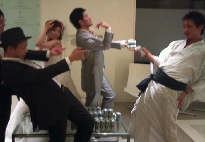 この画像だけ載せておけば、まぁ楽しかったってことが伝わるでしょうっ!! 新郎新婦に無理矢理ジョジョ立ちさせて・・・ スマン・・・ スマンありゃウソだった by.ジョルノ・ジョバァーナ 昨日は久しぶりに朝までのみましたっ(;゚Д゚) 10時間は飲んでたな(´Д`)ハァ… ツカリタ