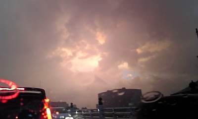 写真ではわかりにくいが、空、赤い