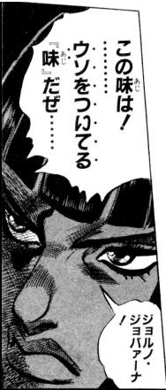 この時アバッキオが岩の欠片を握っていたのは、ジョルノの観察力とスタンドを信用しての事だったのかもしれない(「ブチャラティなら見つける」と思ってい たのかもしれないが)。