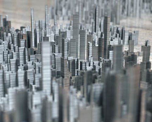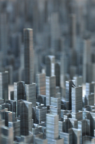 一瞬、高層ビル群に見えますよね? 正解は・・・ ホッチキスの針っ(;゚Д゚) 10万個以上使って、40時間かけて作ったんだってさっ!! スゴクネ?