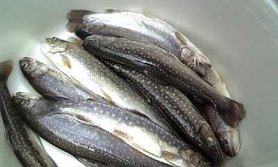 コチラは早朝に渓流で釣ってきた川魚どもっ!!
