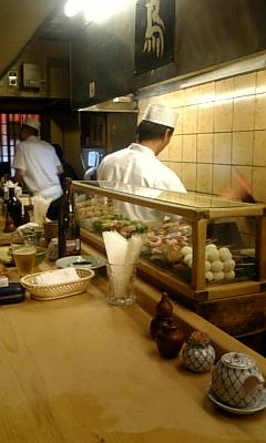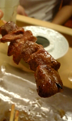 今回は同じくジョジョ好きの先輩に撮影して頂きましたっ!! 足も写して欲しかったなぁ(笑 法善寺横町の入り口からスグっ!! 良い雰囲気が出てますねぇっ!! 入ったのは『二和鳥』というお店っ!! カウンターメインでしたっ!! 横の人との距離が近いっ(;゚Д゚) まぁ、それが良かったりするんでしょうねぇ♪ 生中がないようで、瓶ビールで乾杯っ!! 単品じゃなく、コースで注文っ!! まず出てきたのが、つくねっ!! しょっぱなのこのつくねに感動っ!! これが鶏本来の甘さなんですかねっ(;゚Д゚) 噛むとジワァーンと出てくる鶏の脂が旨いっ!! これは味わい深く頂きましたっ!! 続いて、頂いたのが、サシミっ!! キモを頂きましたが、これがまた旨いっ(;゚Д゚) 多少の苦味が大人の味って感じですっ!! 次ぎは砂ずりっ!! 砂ずりは食感が命っ!!・・・と思ってんすが、どうです? 他の焼き鳥にはない食感でっしゃろ? これが好きなんですわぁっ!! これは手羽っ!! いやぁ、脂のノリもよく骨までいったろか思いましたっ!! 次に出てきたのは、玉ひもっ!! 昔、鶏を潰したとき、出て来たのを思い出しましたっ!! 潰した鶏を熱湯に浸けて、毛をむしったのも同時に思い出しましたっ(;゚Д゚) 最後に出て来たのが、コレっ!! 焼き銀杏っ!! こんな感じで出てきたのは初めてだったので、ビックリっ(;゚Д゚) 旨い旨いっ!! あぁ~良い店紹介してもらったぁっ!! でも、生ビールは欲しかったっすねぇっ(つд⊂)エーン まぁ、瓶ビールをコップでチビチビってのもアリですかねっ!! コップで・・・ 簡単だよォー・・・ by.F・F 生ビールがなくても、こんな嬉しそうに瓶ビールを飲みますよっ!! この『二和鶏』の後は、前々より紹介頂いておりました、 ギョーザの旨い店を訪問しましたっ!! 次回のブログはそのギョウザの店『天華』へっ!! オタノシミニー'`,、('∀`) '`,、 『二和鳥』 HP:ナシ(参照http://r.tabelog.com/osaka/A2702/A270202/27001249/) 住所:大阪府大阪市中央区道頓堀1-7-7 電話:06-6211-1519