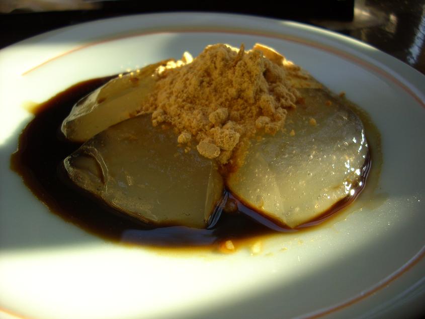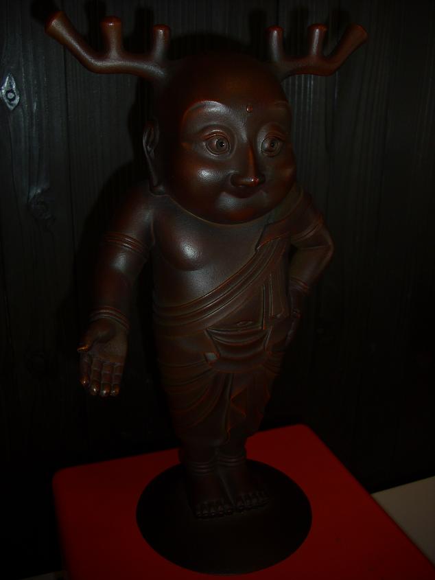 奈良散策最終章っ!! 奈良公園から奈良駅への帰り道っ!! 人力車の兄ちゃんに教えてもらいましたが、人力車には乗らずっ(;゚Д゚) いやぁ、悪い事しましたっ!! 店の中は落ち着いた雰囲気っ!! お店の二階からは外が景色が眺めることができ、自然の中でホッコリできますっ!! 店内のこの桜も心を和ませてくれましたっ!! こういうのもオシャレですなっ(;゚Д゚) 奈良散策に歩き疲れ、身体が甘いものを欲しておりましたっ!! そこで注文したのが、葛餅セットっ!! 黒蜜の甘さが身体の疲れを一気に取ってくれましたっ!! 見て見てっ!! プルンプルンでしょっ(;゚Д゚) 普段なら2秒くらいでペロリできる量ですが、今回はユックリ味わいましたっ!! あと、抹茶がまた美味しいっ!! ε-(´∀`*)ホッとするひと時を与えてくれましたっ(;゚Д゚) いやぁ、旨いもん食わしてもらいましたっ!! 今回の奈良散策で奈良のイメージががらりと変わりましたっ!! もうちょっと奈良のこと、歴史のこと勉強しようって気になりますよっ!! でも、今回は動くせんとくんを見れなかったのが残念っ(つд⊂)エーン そうそうっ!! 『せんとくんの兄』のブロンズ像が置いてありましたっ!! それがコチラッ(;゚Д゚) ( ´,_ゝ`)クックック・・・( ´∀`)フハハハハ・・・( ゚∀゚)ハァーハッハッハッハ!! 全然可愛くないっ(;゚Д゚) むしろ恐いっ(;゚Д゚) せんとくんと全然違うっ!! やっぱ、仏さんの頭に鹿の角はダメですなっ(笑 頭に・・・ おい・・・先輩 by.東方仗助 ギャアァァァァ━━━━━━(|||゚Д゚)━━━━━━!!!!!! 鹿の角、生えてて良いですっ(;゚Д゚) 仗助は怒ったら恐いですからねっ!! ちなみにせんとくんにも家族がいるようでっ!! さっきのブロンズ像は兄の『鹿坊(ロクボウ)』っ!! んで、祖父の『鹿爺(ロクジイ)』もいるらしいですっ!! (´Д`)ハァ… せんとくんだけにすれば良かったのに(;´д`)トホホ… せんとくん以外、キモイ(笑 鹿坊も鹿爺も検索しないようにっ!! これ以上せんとくんのイメージを壊さないでぇ(つд⊂)エーン また奈良散策したいと思いますっ!! どなたか奈良の良いスポット知りません? ココ行けっ!!ってのっ!! ( `・∀・´)ノヨロシク 『吉野本葛 天極堂』 HP:http://www.kudzu.co.jp/ 場所:奈良県奈良市押上町1-6 電話: 0742-27-5011